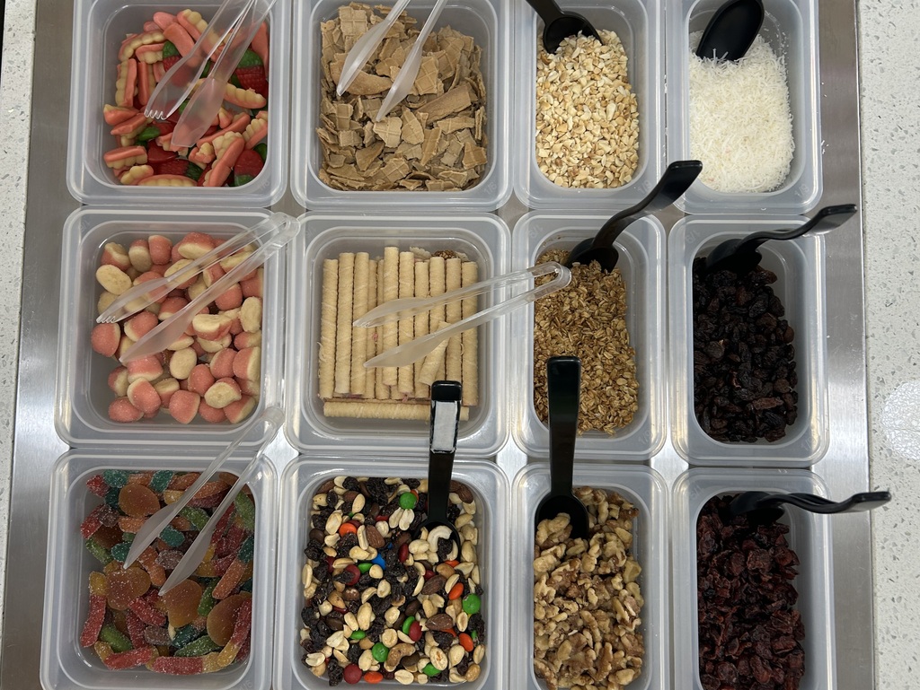 Hasta 24 toppings variados, como gomitas, coco, barquillos, salas, etc. Solo en Heladisimo